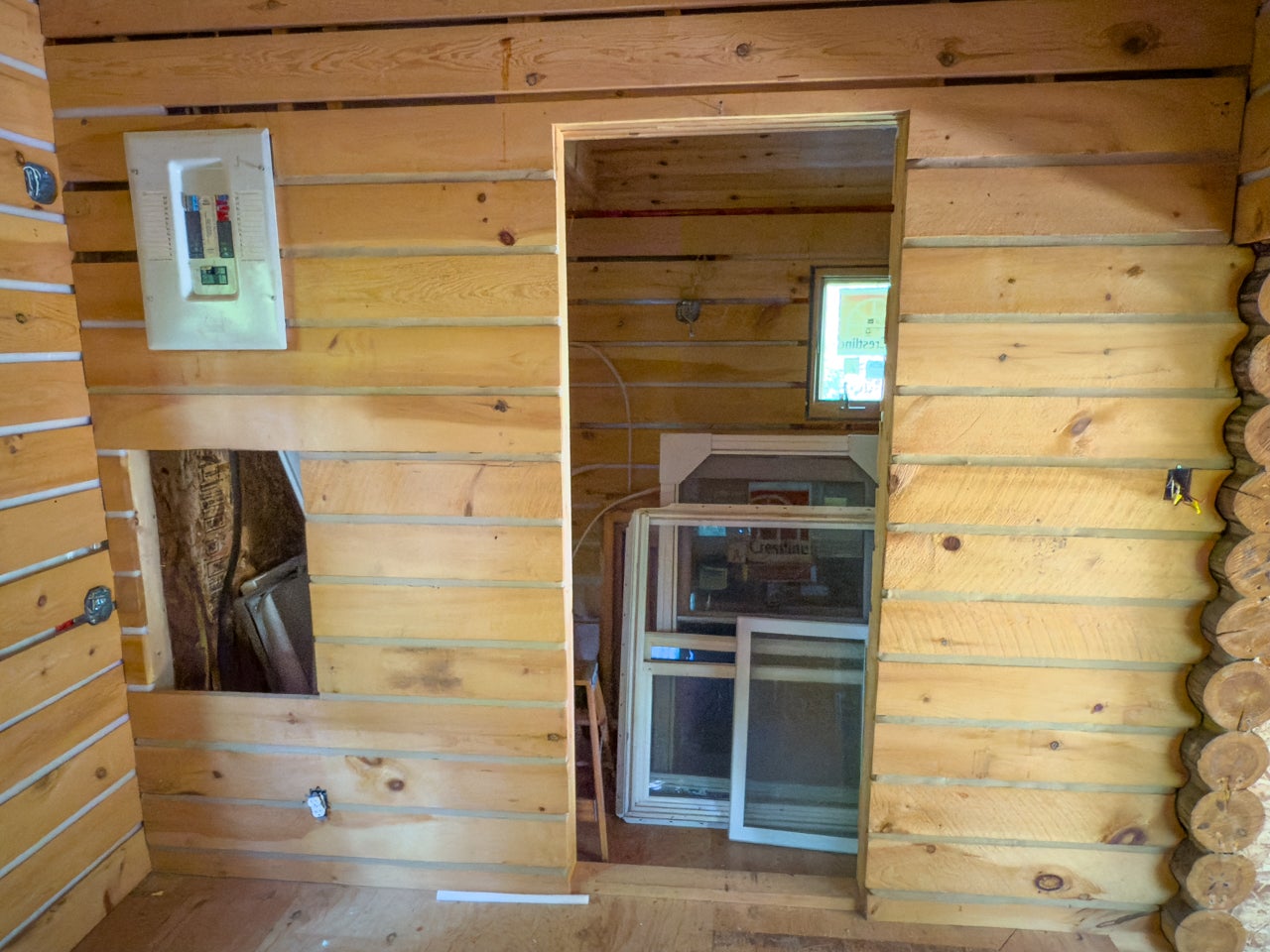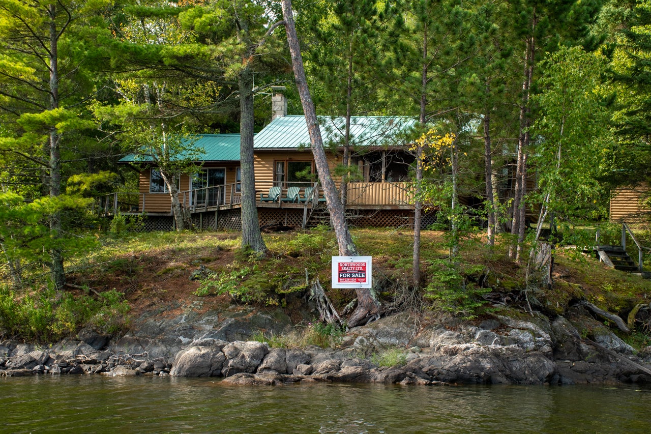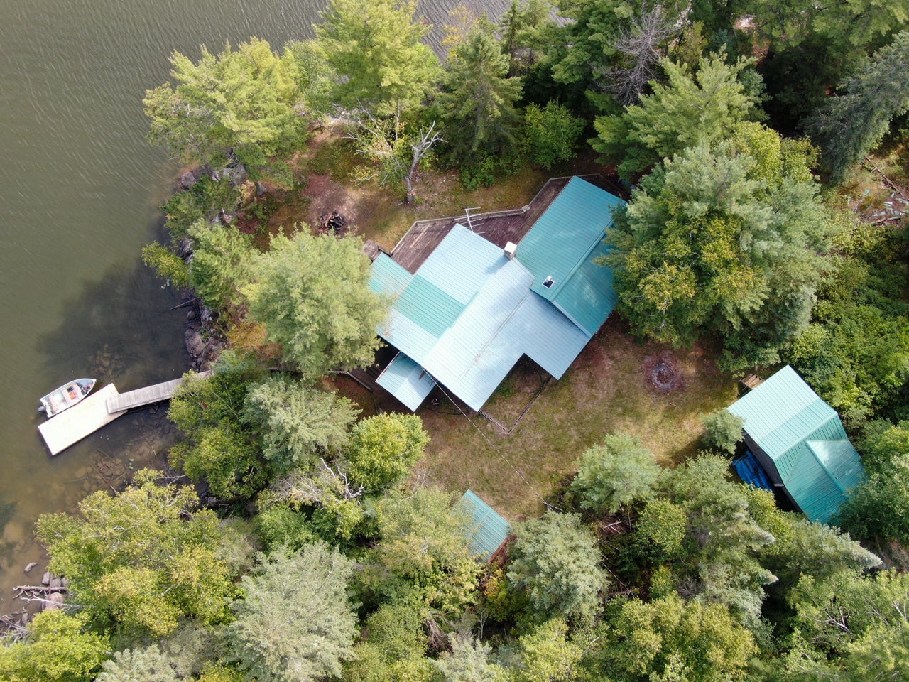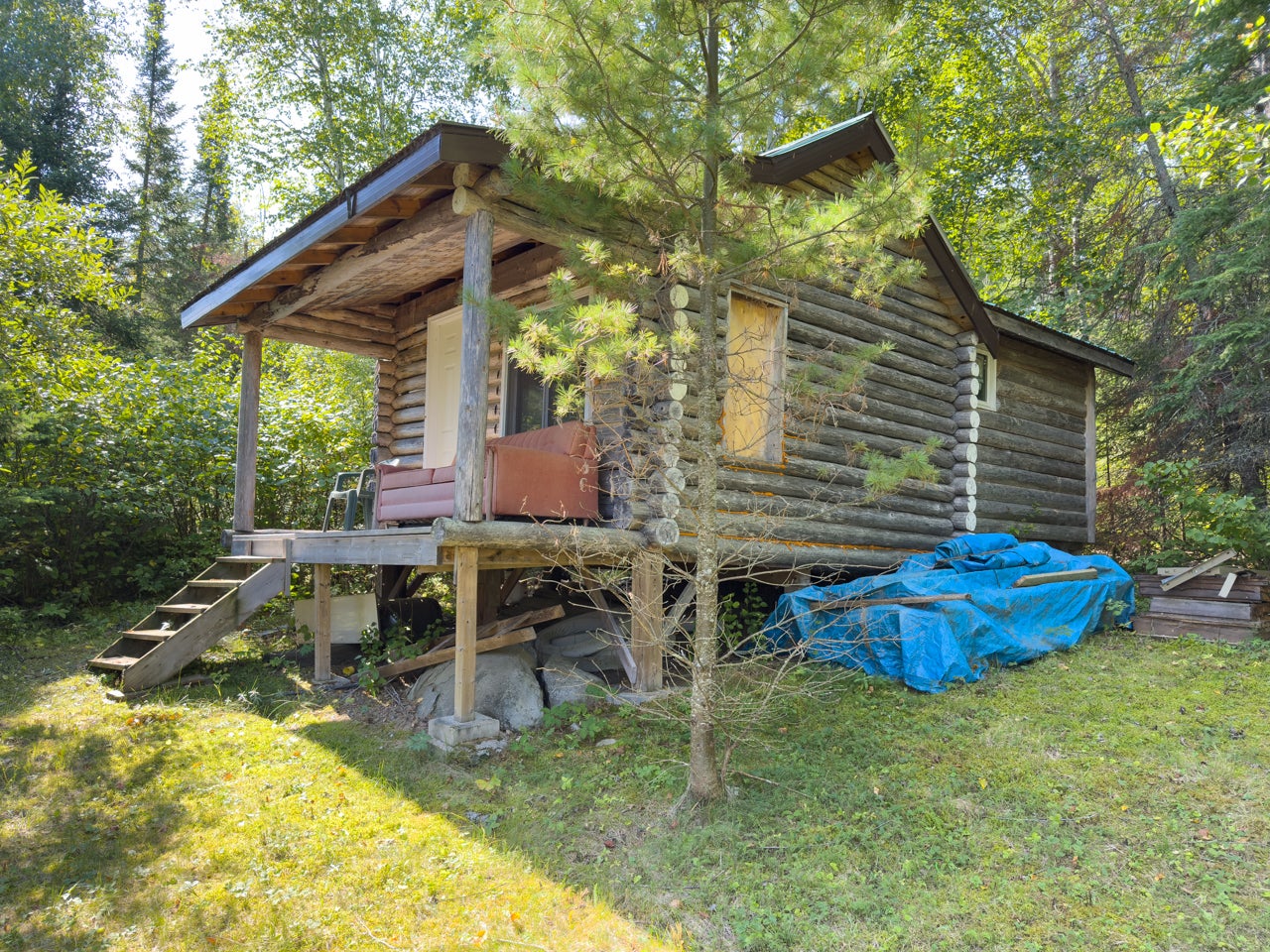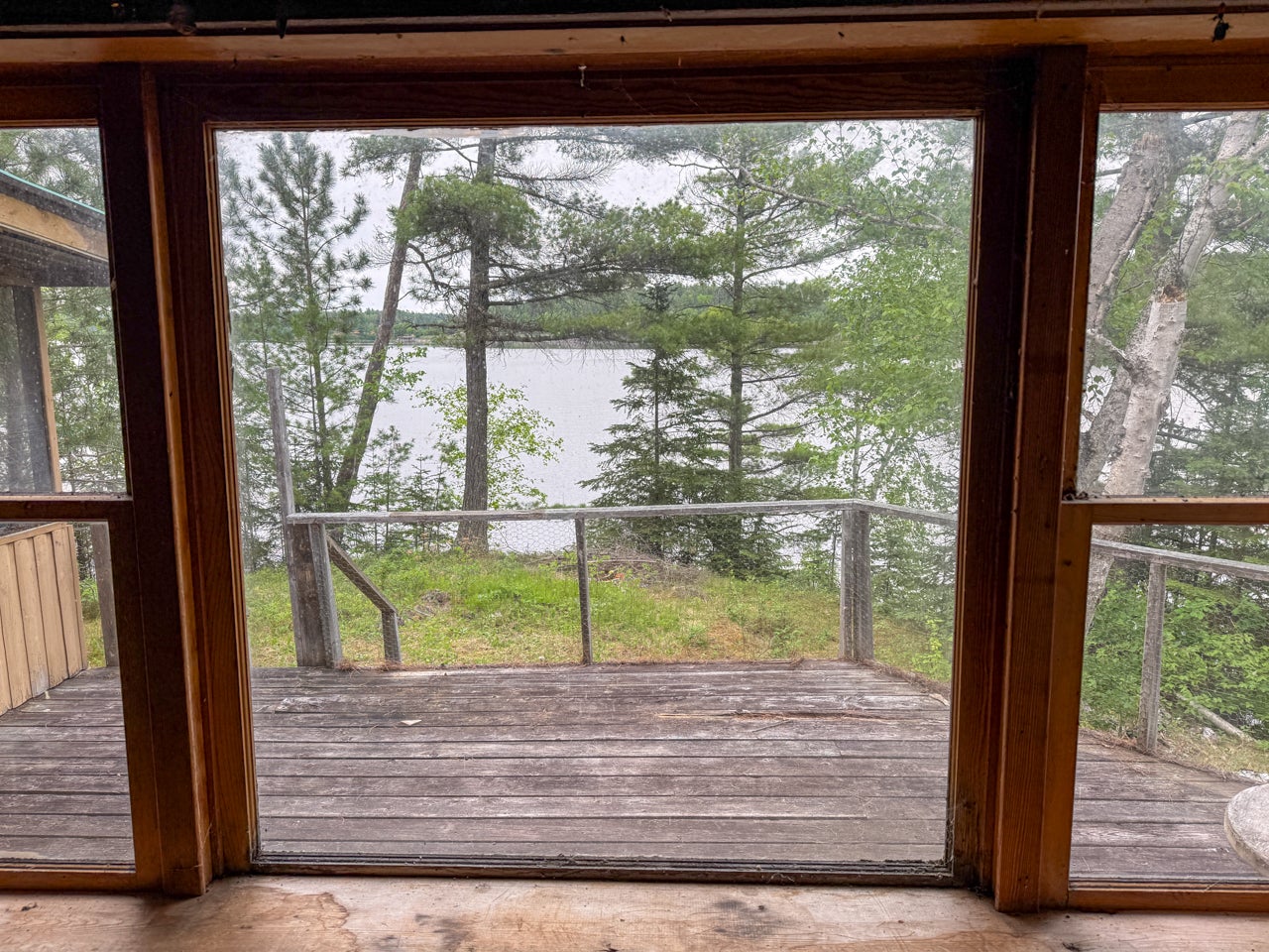 Cabin on Sabaskong Bay, Lake of the Woods. It's a nice setting, with the cabin situated close to the water's edge among some beautiful pine trees.