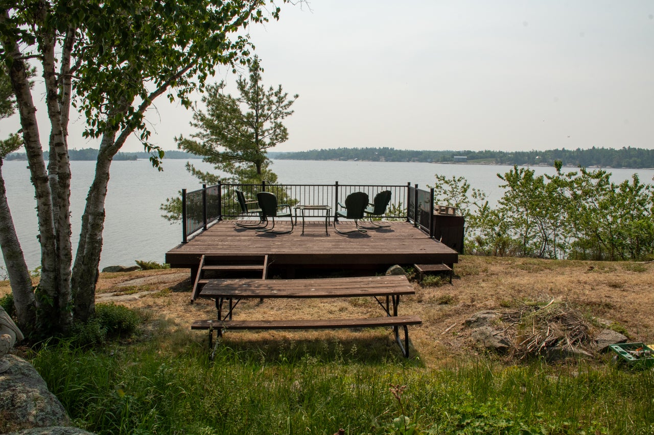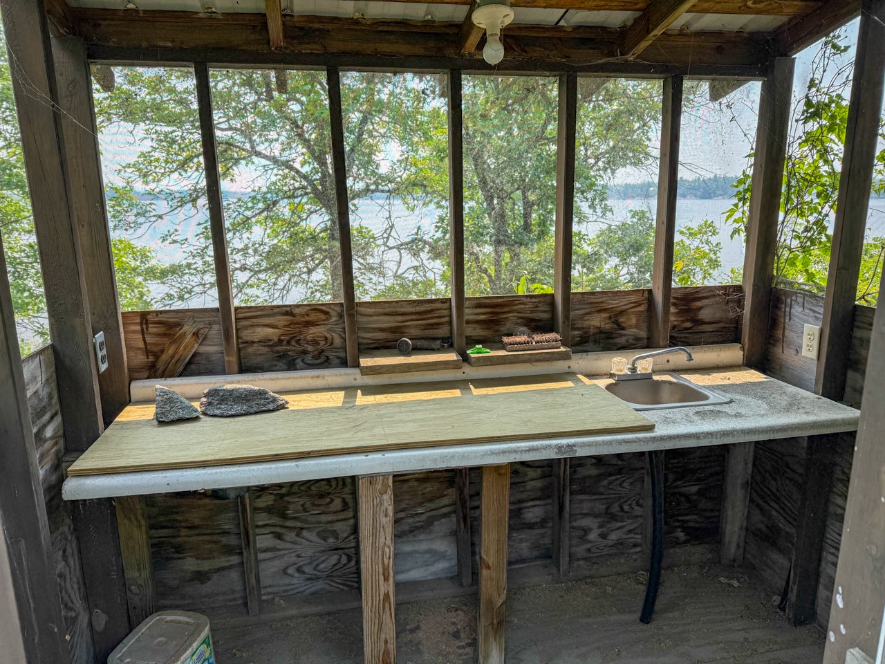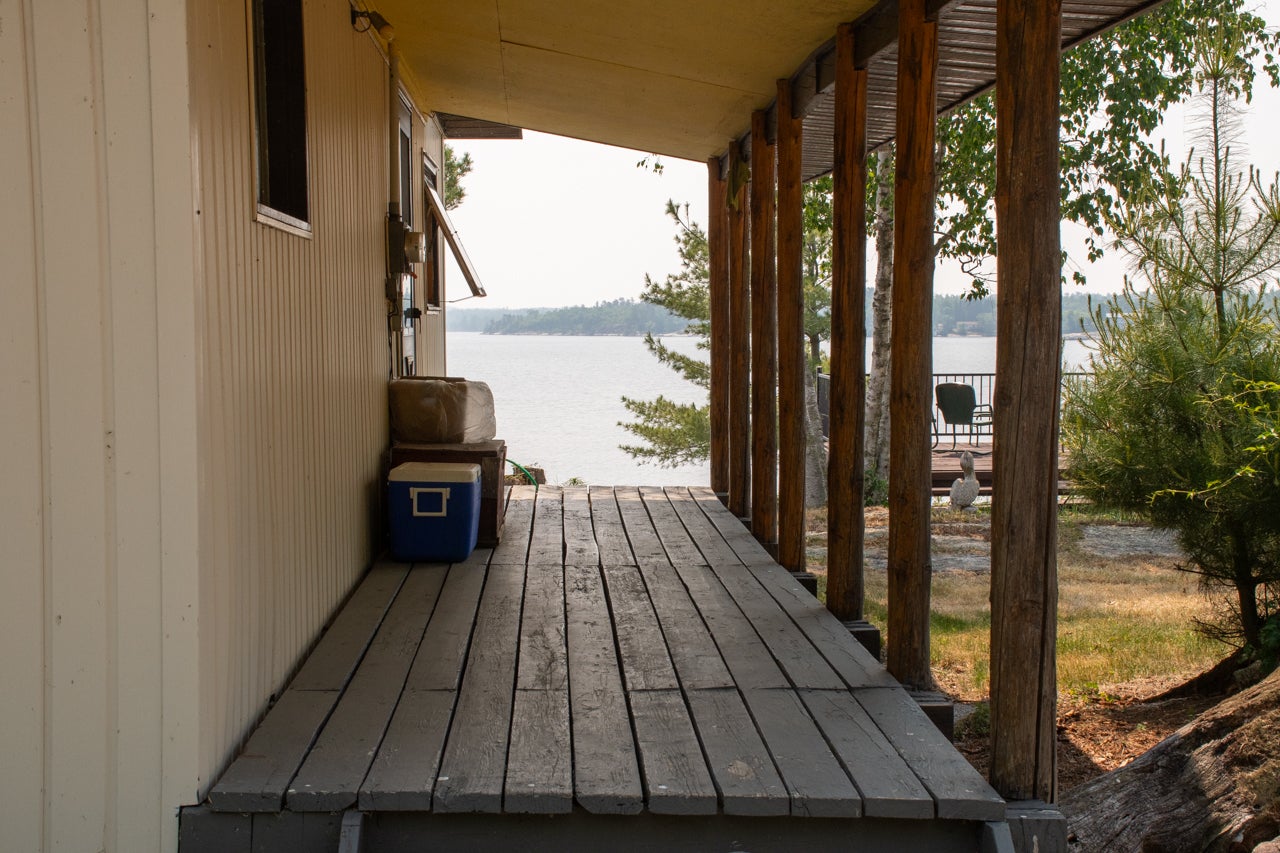 Enjoy big lake views from the cabin and its lakeside deck. Spend your evenings in the screened porch. Power is run from the mainland, and parking and docking are just a short boat ride away. Simple, solid, and ready for your next adventure.