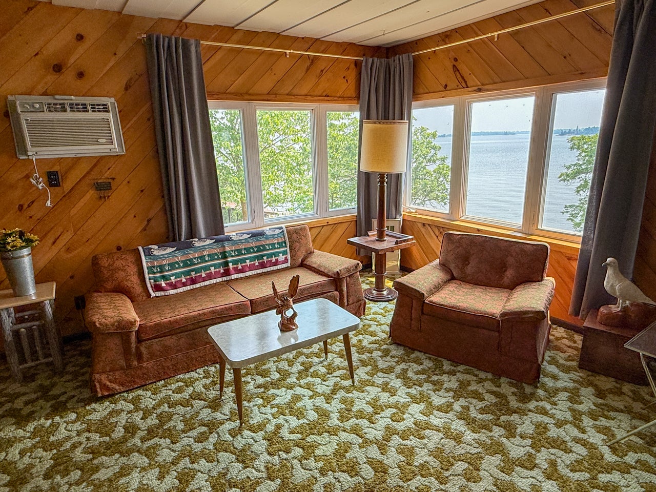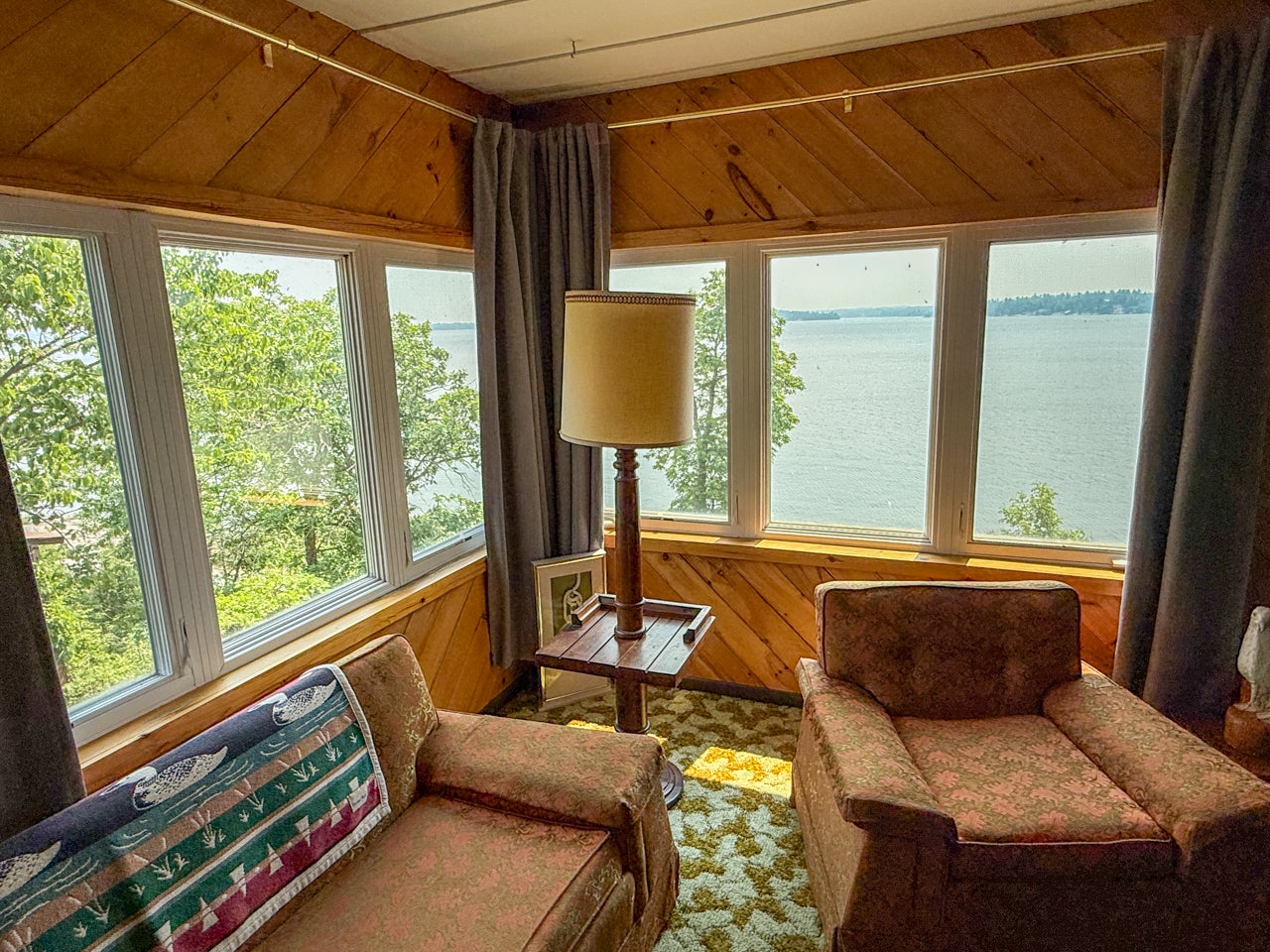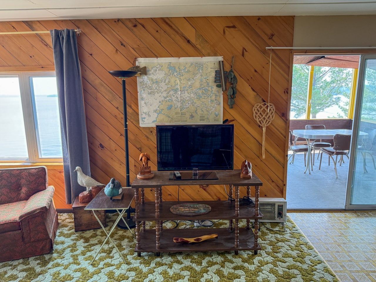 Enjoy big lake views from the cabin and its lakeside deck. Spend your evenings in the screened porch. Power is run from the mainland, and parking and docking are just a short boat ride away. Simple, solid, and ready for your next adventure.