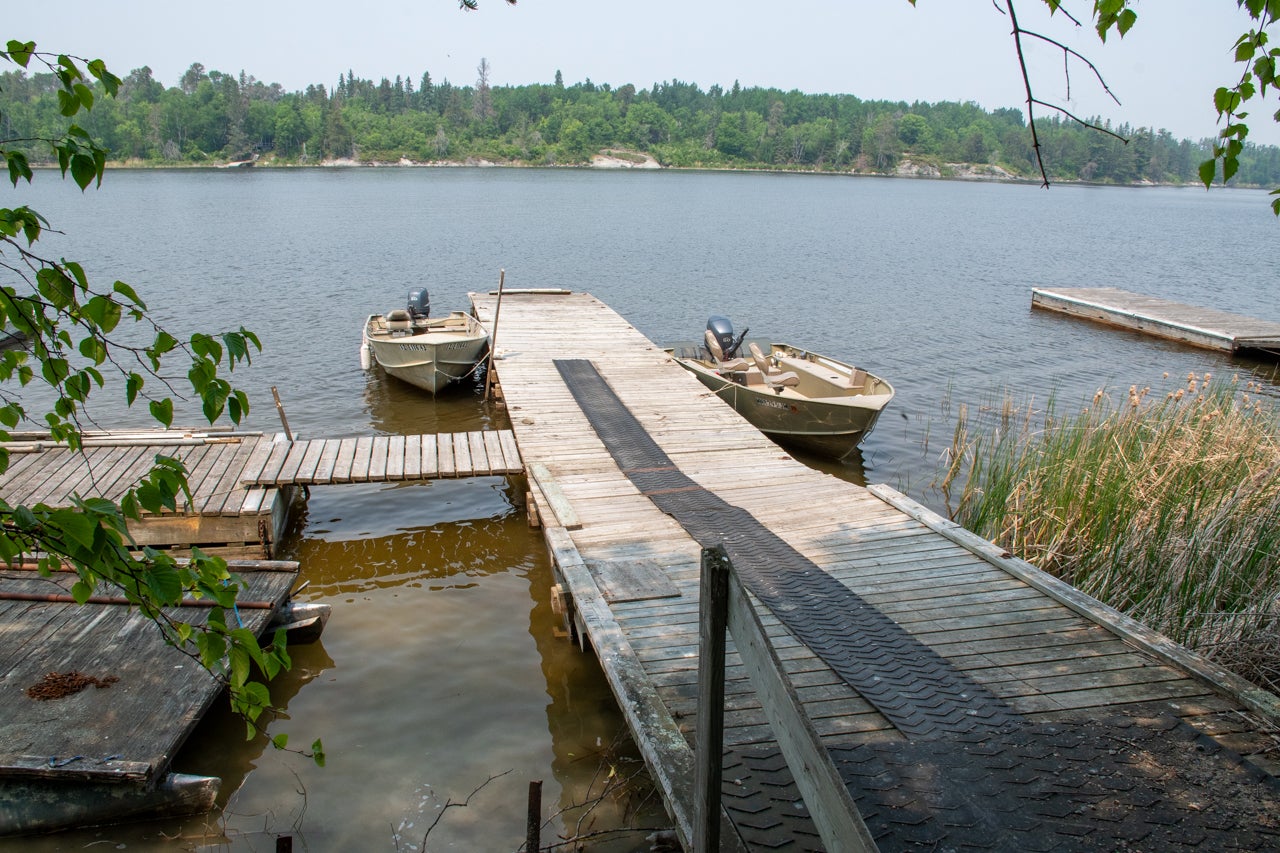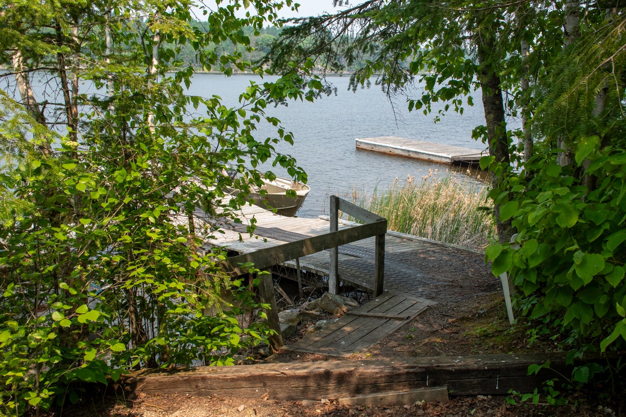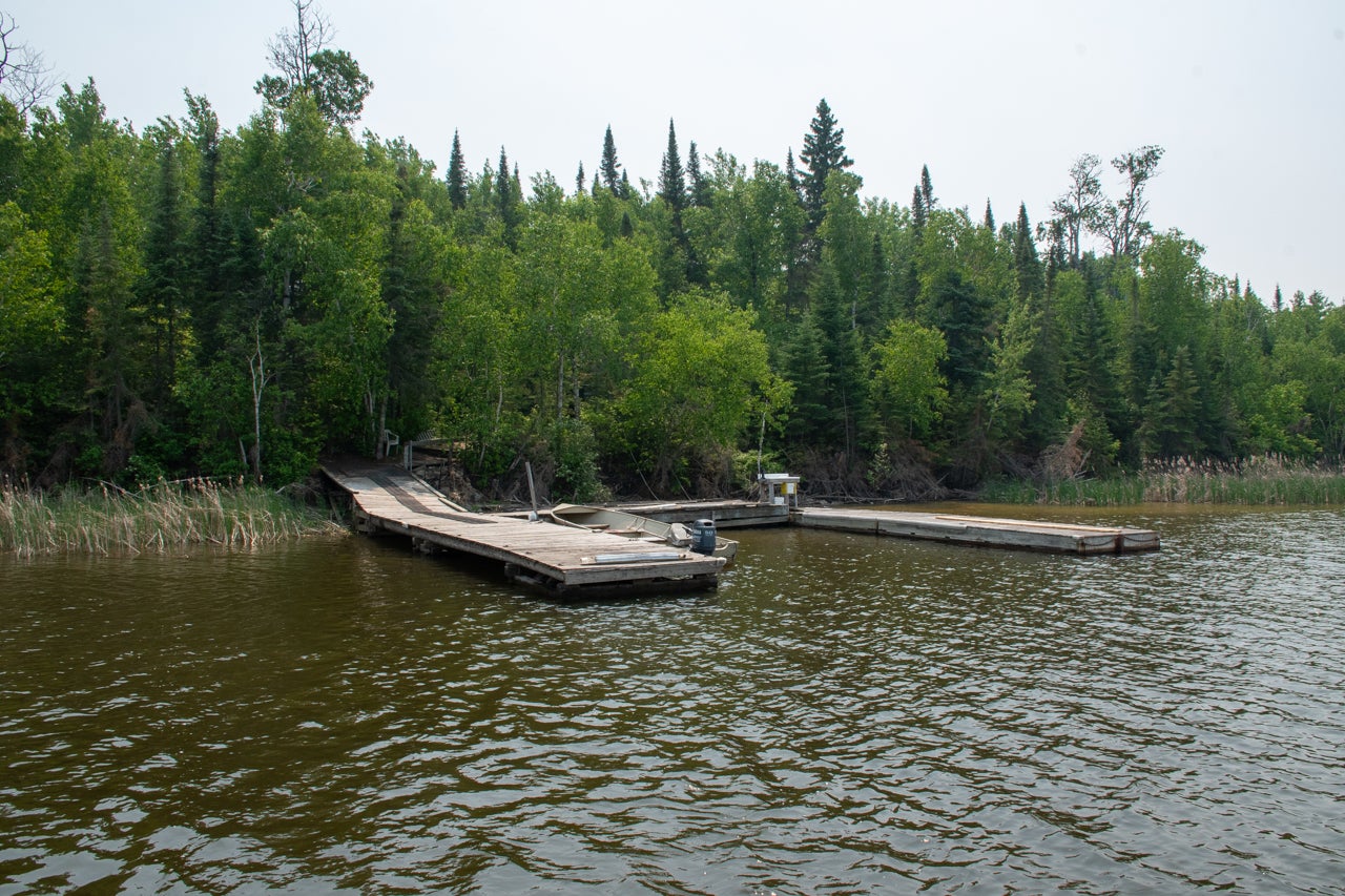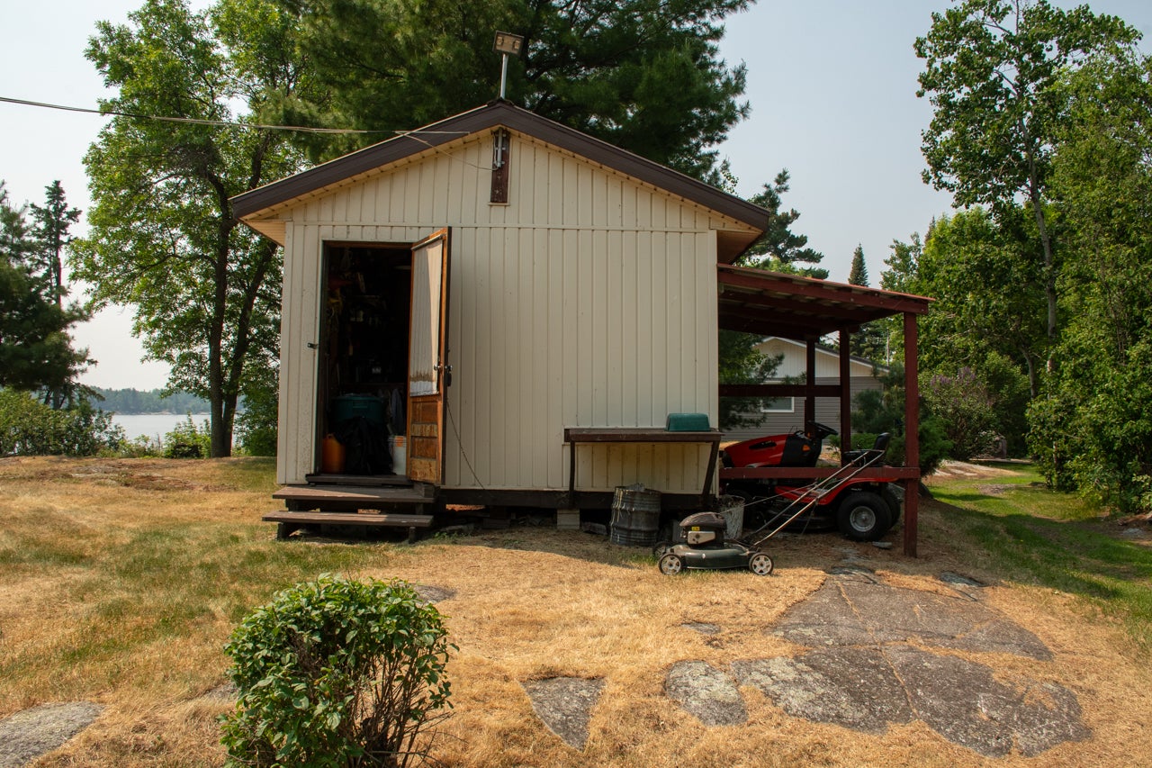 You own the cabin, fish-cleaning building, and storage shed/workshop outright and share a 1/4 interest in four acres of land. There is a shared dock on the north side of the island.