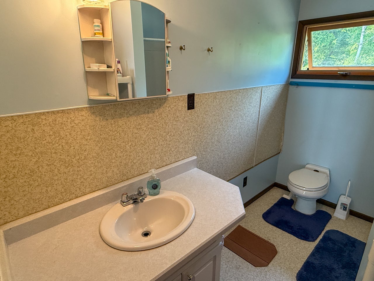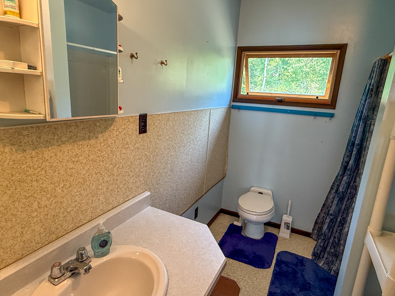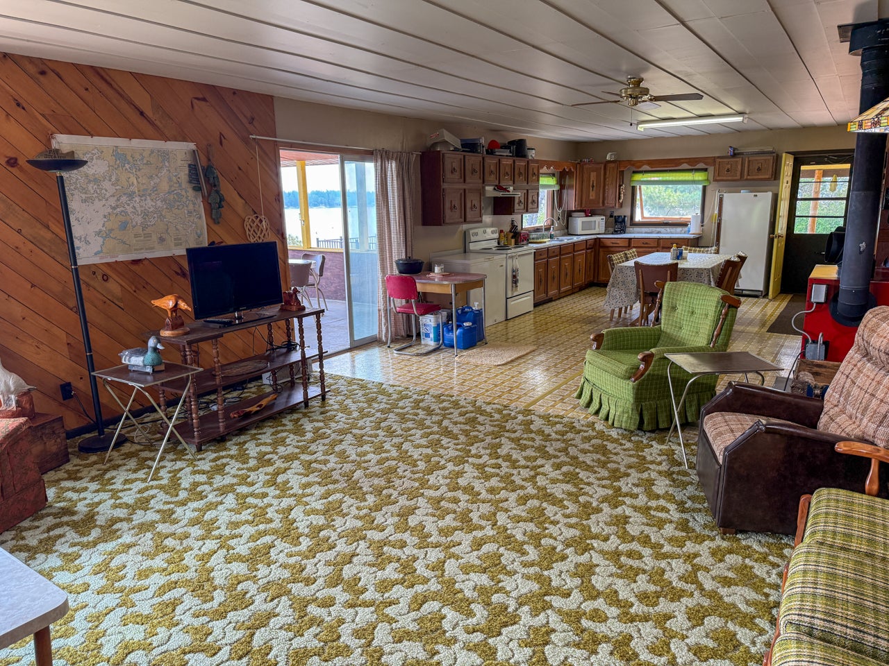 Services include: 100 amp electrical panel, water is drawn from the lake with a submersible pump, heat is provided by a wood-burning stove (not WETT inspected), and an outdoor privy.