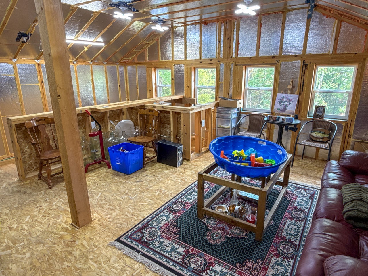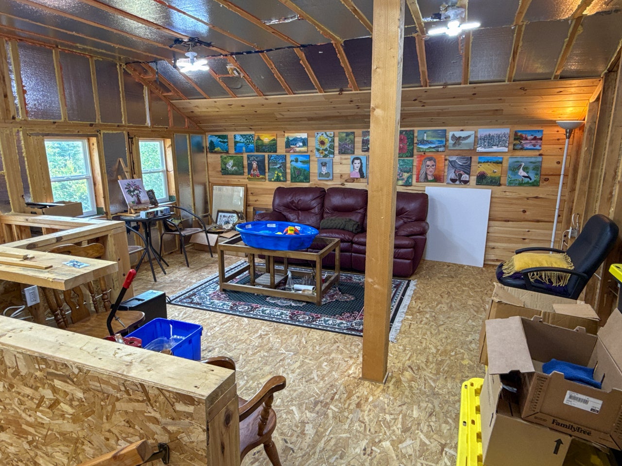 The 30x50 ft. garage, built in 2017, is a serious bonus—fully insulated, with a poured concrete floor, 2x6 walls, propane heat, and a two-storey multi-use wing currently serving as an artist studio and workshop.