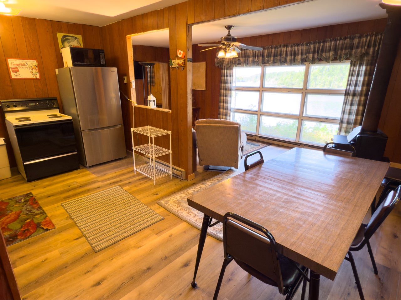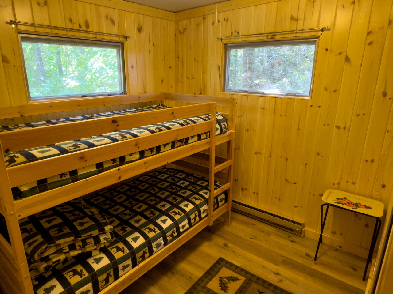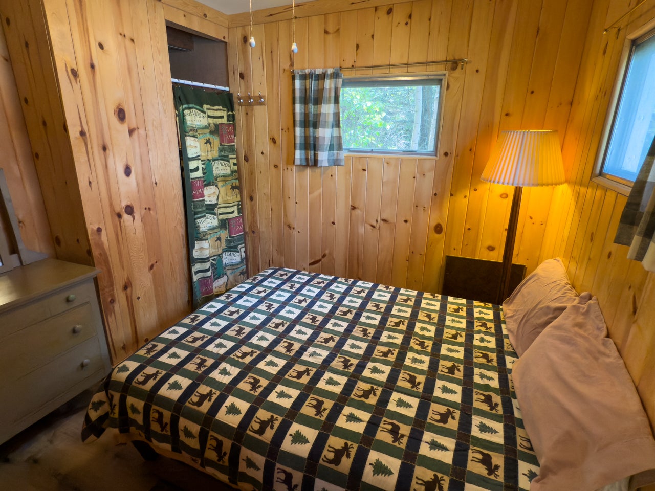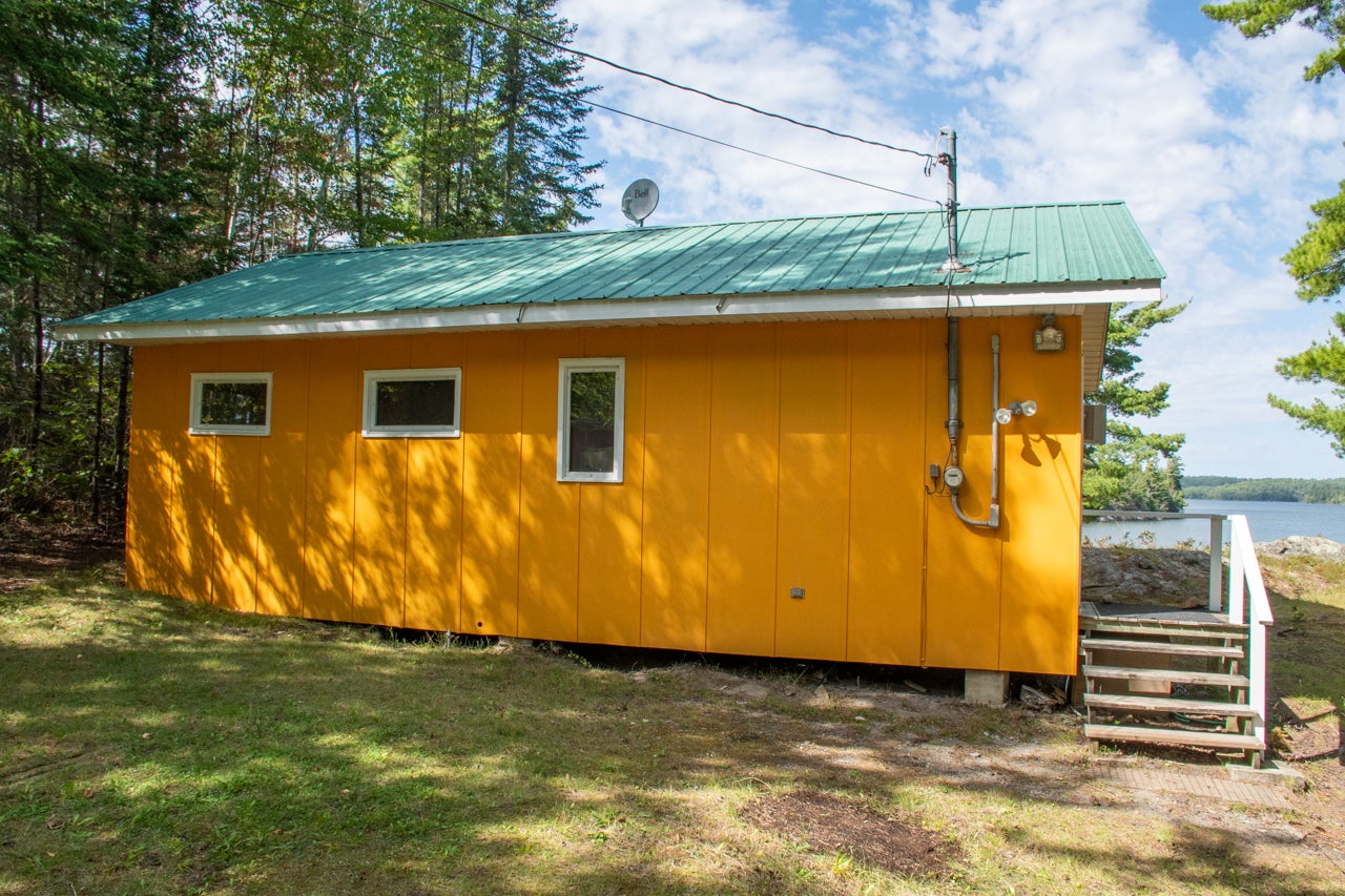 The cozy three-season cabin is 640 sq. ft. with two bedrooms and a three-piece bath. There is laminate flooring throughout, and the bedrooms have been finished with pine. A septic system was installed in 2005.