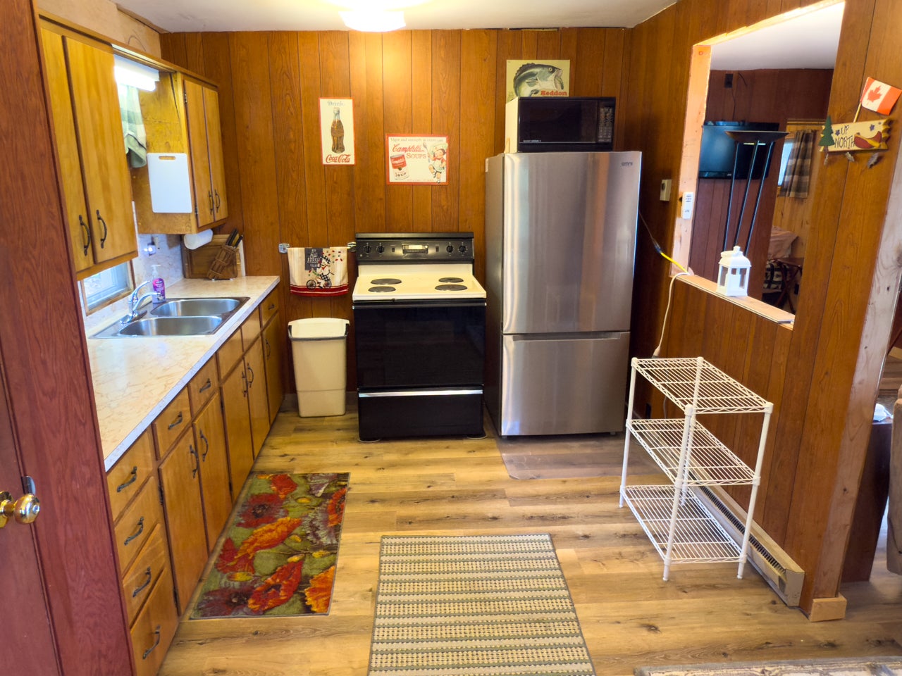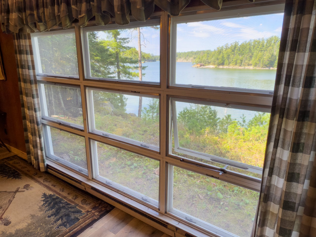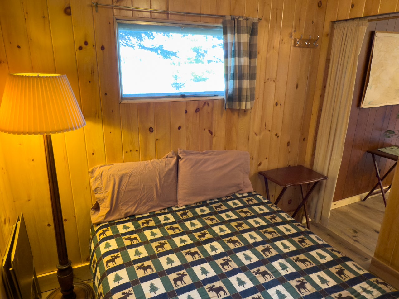 The cozy three-season cabin is 640 sq. ft. with two bedrooms and a three-piece bath. There is laminate flooring throughout, and the bedrooms have been finished with pine. A septic system was installed in 2005.