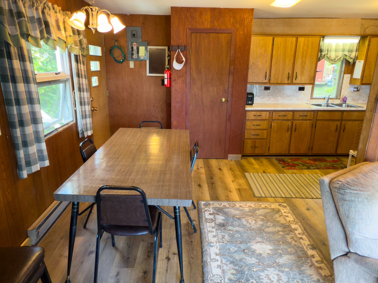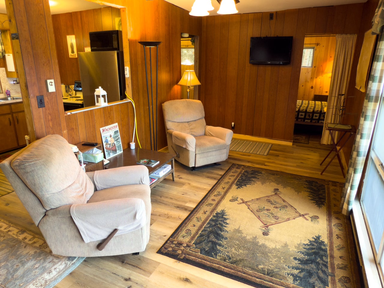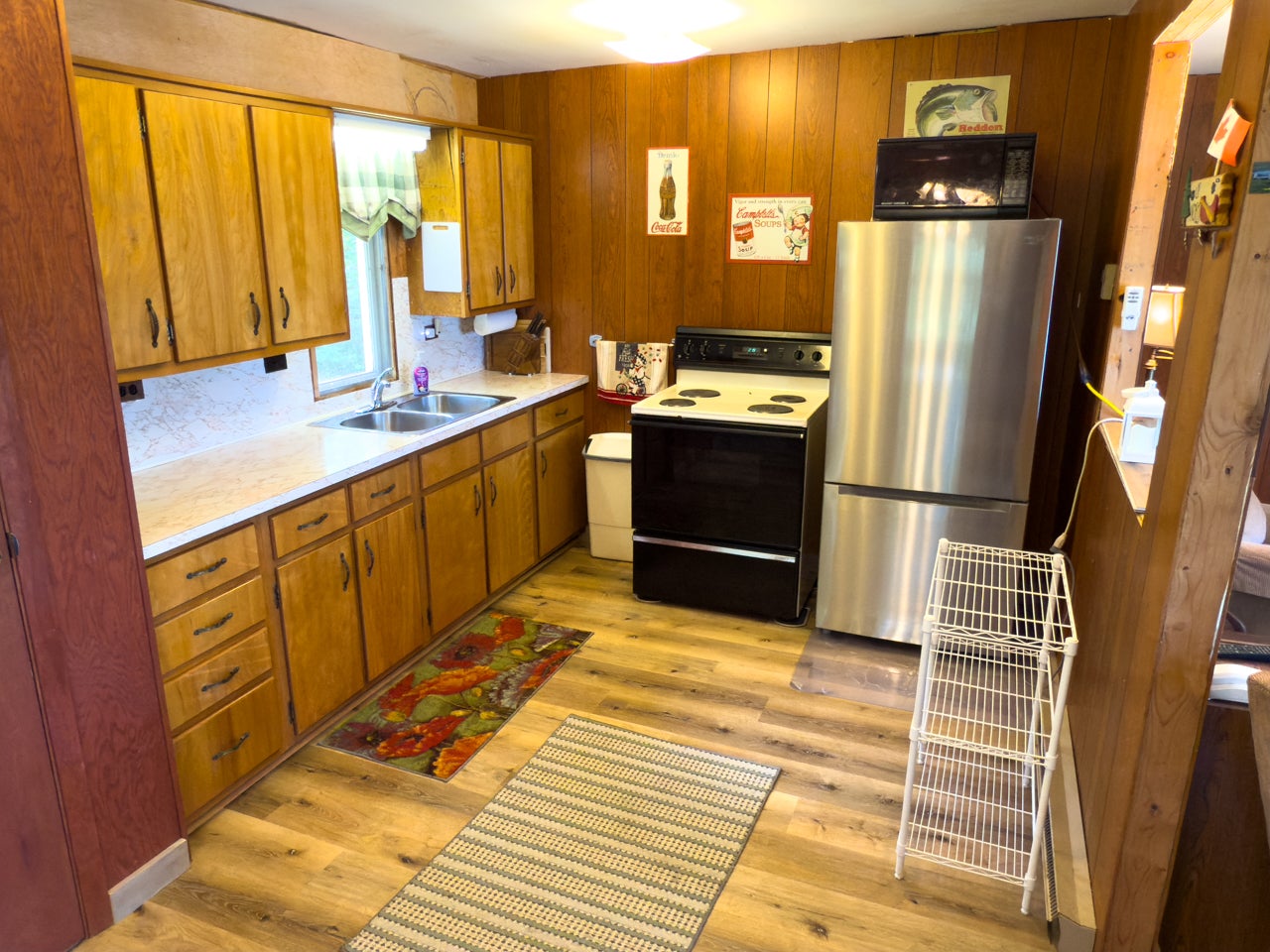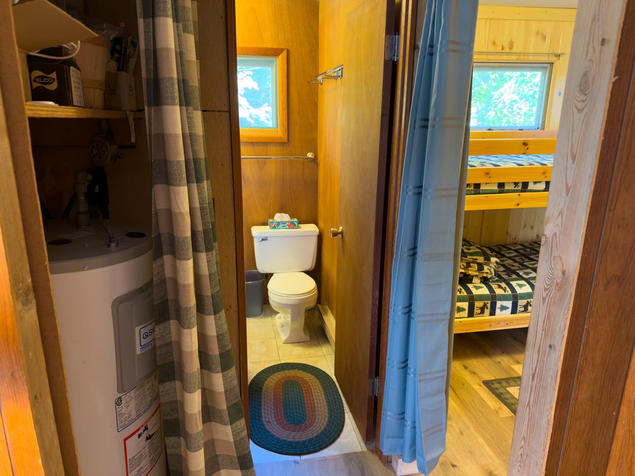 The cozy three-season cabin is 640 sq. ft. with two bedrooms and a three-piece bath. There is laminate flooring throughout, and the bedrooms have been finished with pine. A septic system was installed in 2005.