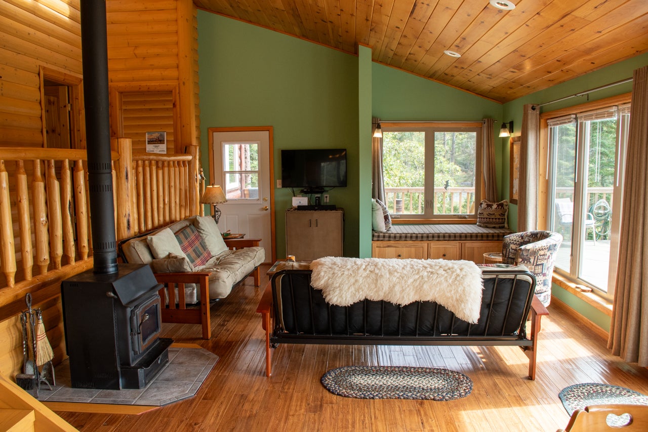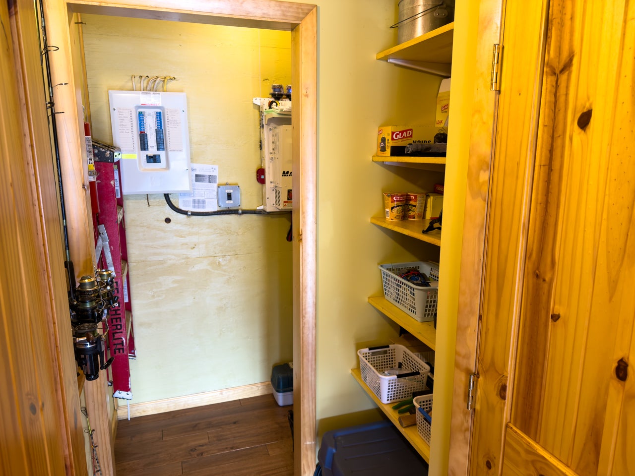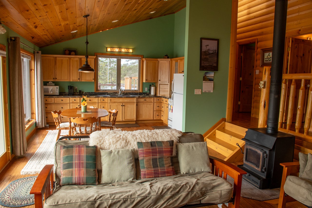 Off-grid is effortless here: 200-amp service, an 8-panel solar array with 2020 batteries, a wired-in Generac generator, Rinnai on-demand hot water, a Kingsman wood stove (WETT inspected), an upgraded filtered water system with submersible jet pump (2023), and a certified septic tank and field. Excellent cell coverage and Starlink-ready internet keep you connected. The cabin stands on 44 concrete piers on bedrock for lasting stability.