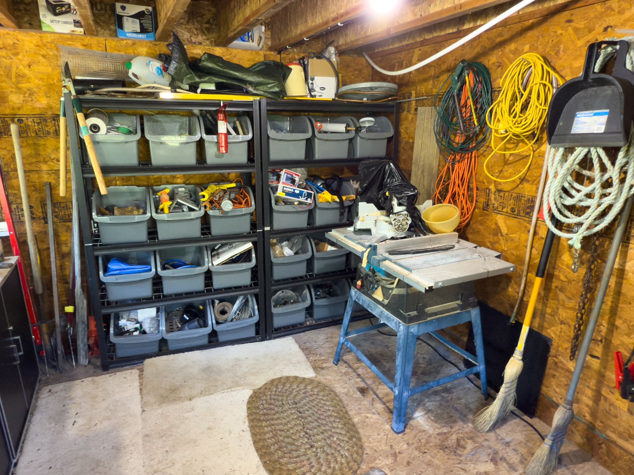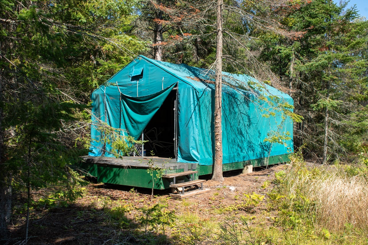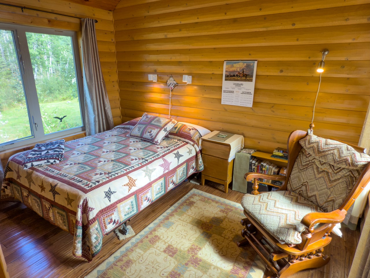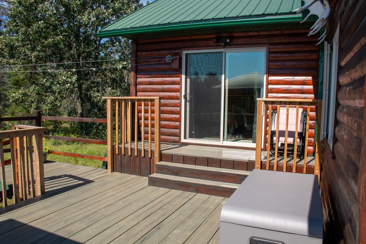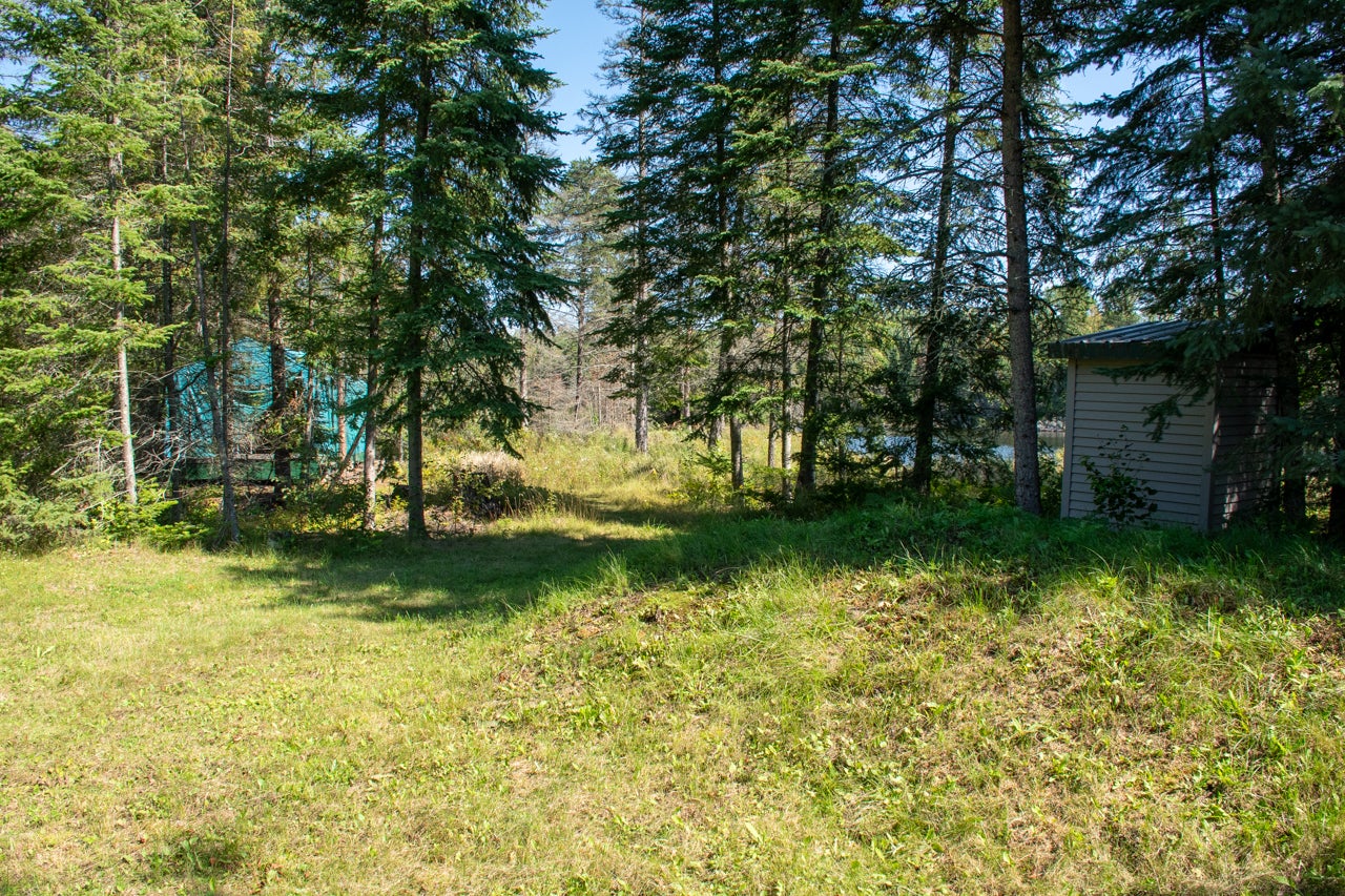 The approx. 1,200 sq. ft. cabin blends craft and comfort: a custom kitchen, ¾ inch hickory flooring, half-log siding inside and out, dual-pane windows, three generous bedrooms, a 4-piece bath, laundry, and a handcrafted log railing. A full-wrap deck spans three sides, while the floating dock sits just steps from the door. Below the cabin, a full shop/bunkie adds utility; a large tent structure on poured piers is prepped for a future bunkie. Garden plots and cleared walking paths knit the site together.