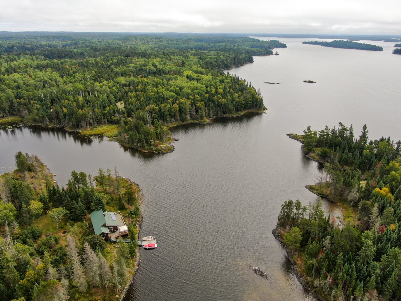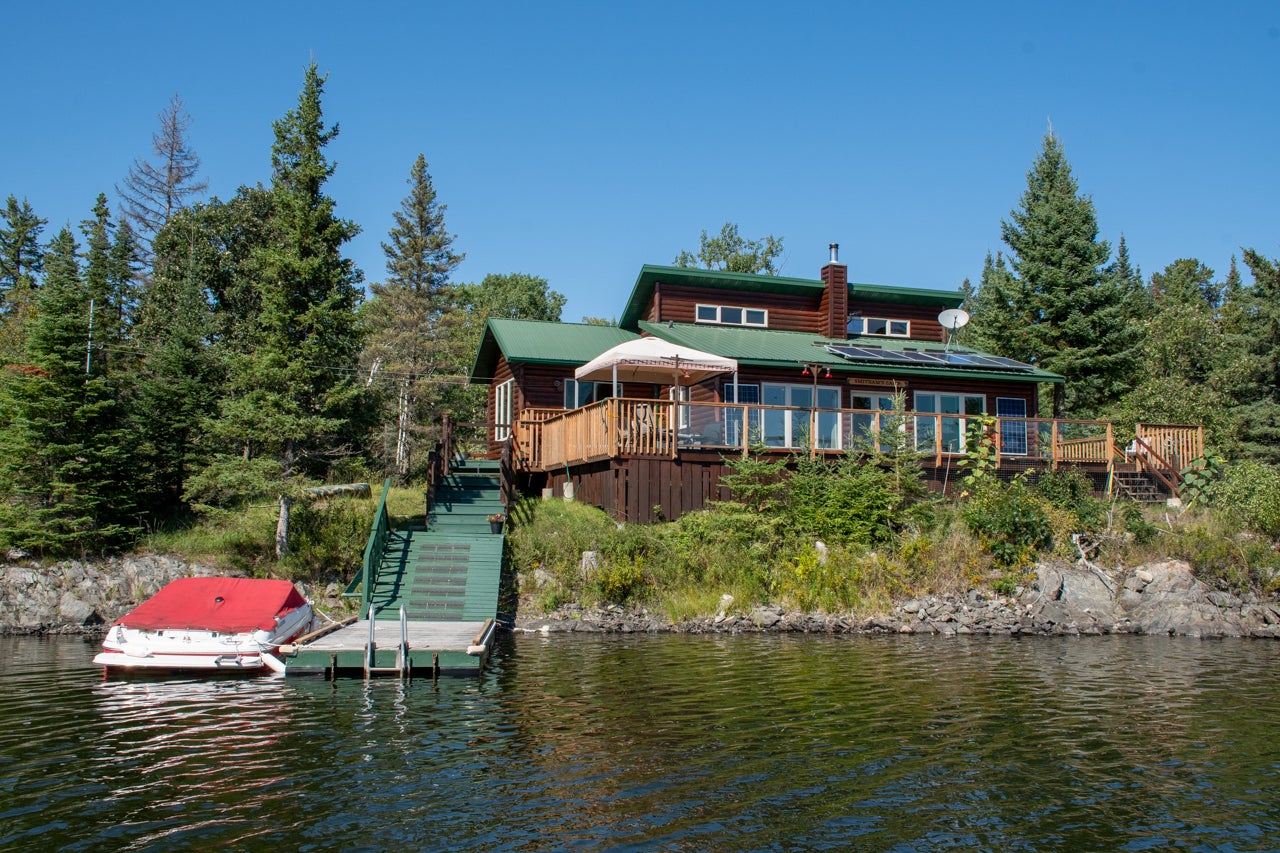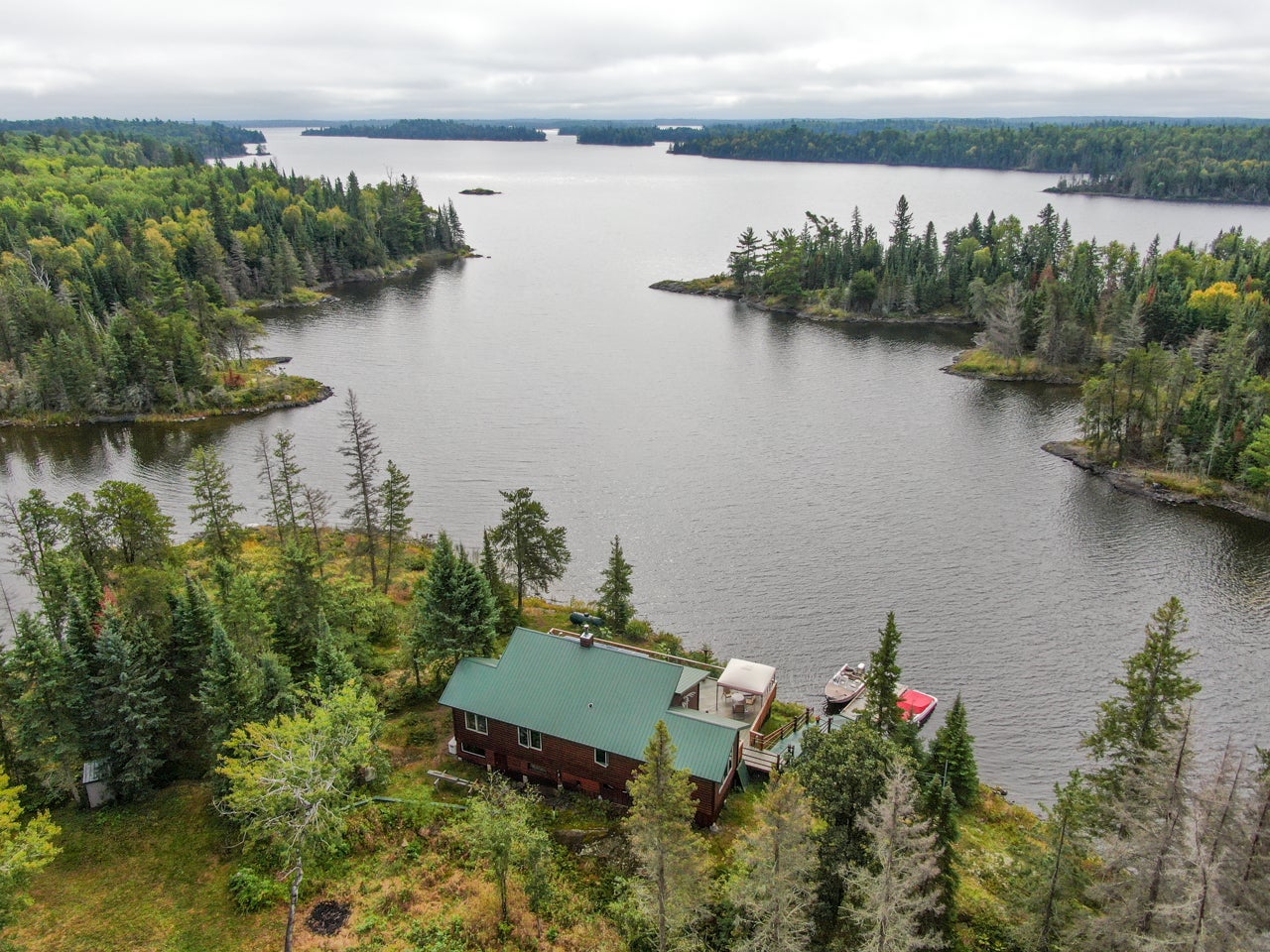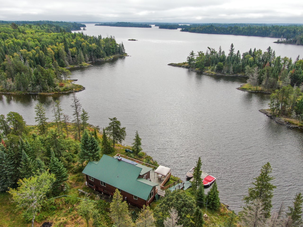 Architect-designed and custom-built in 2013, this Lake of the Woods retreat sits close to the water on 15 acres with 2,172 feet of deeded shoreline just north of Yellow Girl Bay—about halfway between Sioux Narrows and Kenora. World-class fishing, big sky, and wilderness.