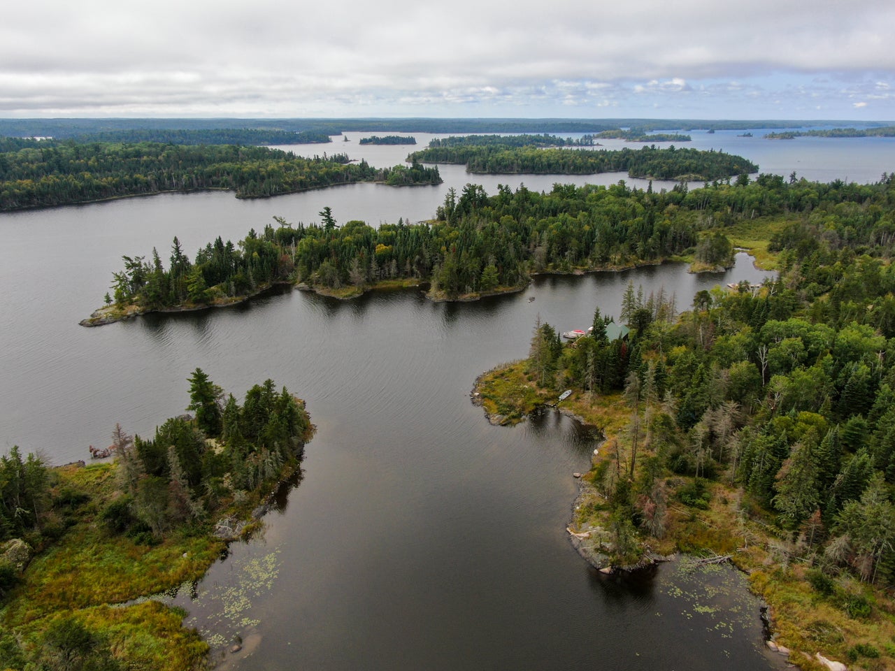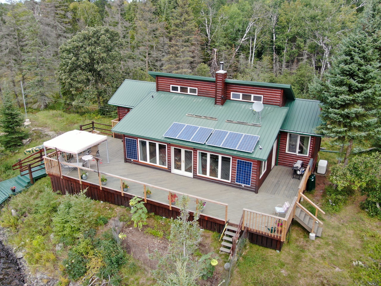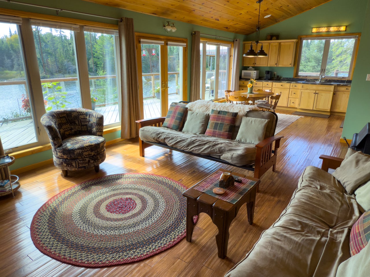 Architect-designed and custom-built in 2013, this Lake of the Woods retreat sits close to the water on 15 acres with 2,172 feet of deeded shoreline just north of Yellow Girl Bay—about halfway between Sioux Narrows and Kenora. World-class fishing, big sky, and wilderness.